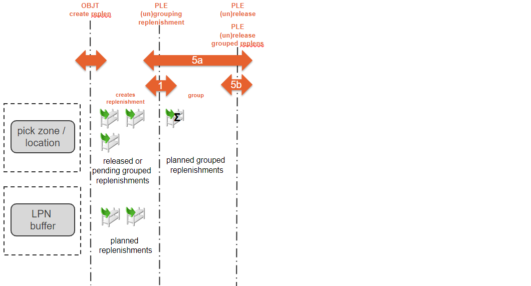| 5b. Grouped replenishments are released at the right time. PLE can unrelease grouped replenishments under certain circumstances. |