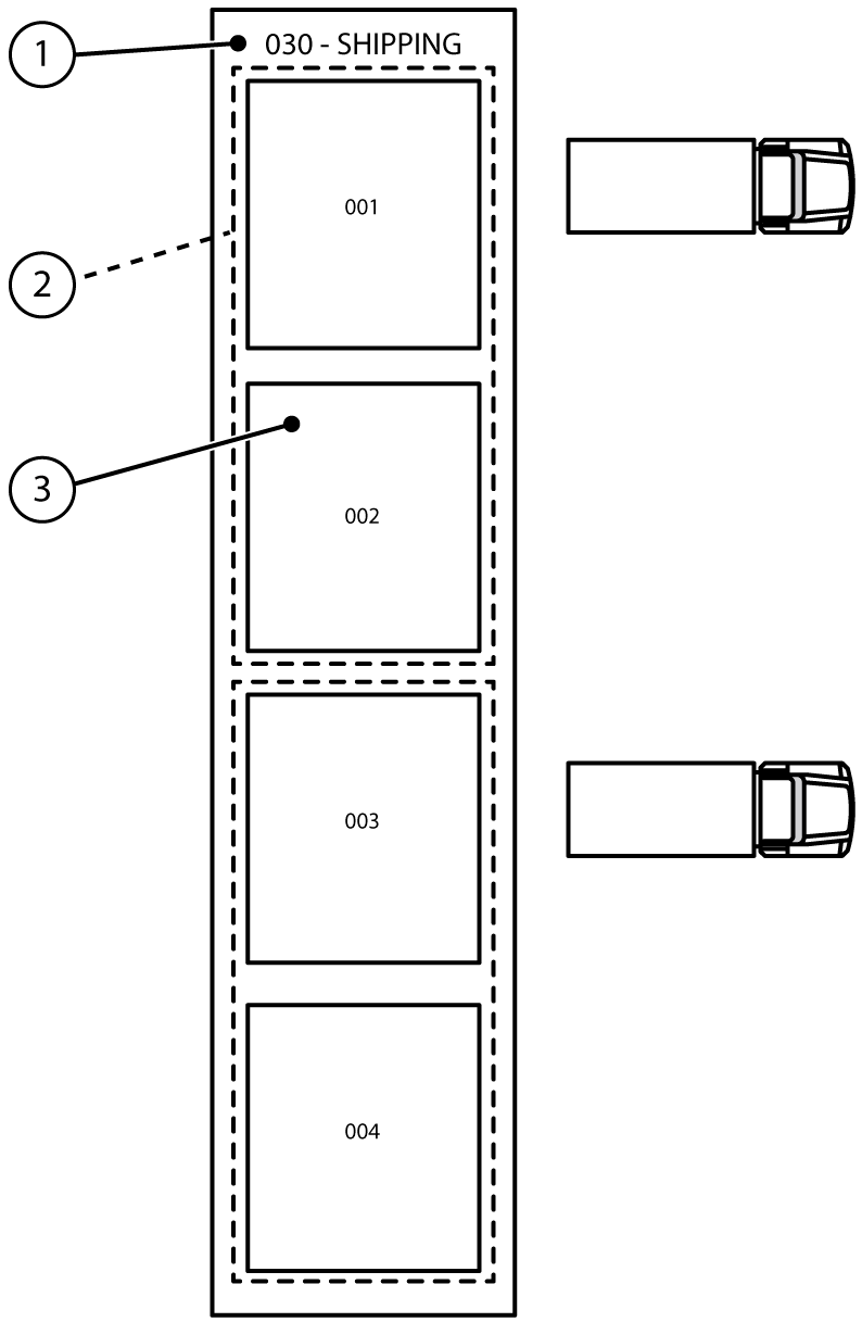 A warehouse (1) can have one or more loading areas (2). The loading areas (2) contain one or more loading locations (3) or loading docks where goods can be loaded.